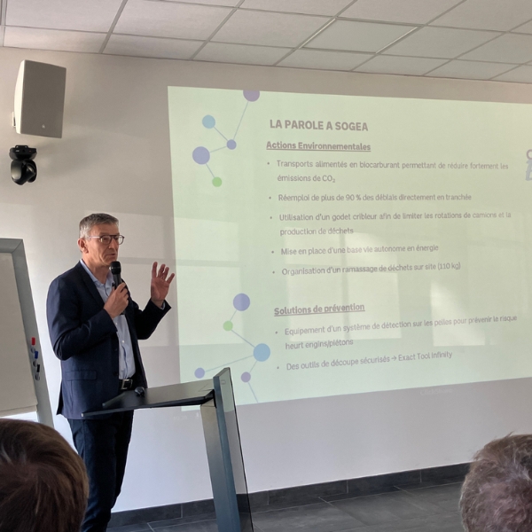 La gestion des matériaux constitue un autre levier majeur : plus de 90 % des déblais ont été réemployés directement en tranchée, rendue possible par une analyse fine des matériaux et l’utilisation d’un godet cribleur. Cette approche permet de réduire significativement les déchets et les transports.